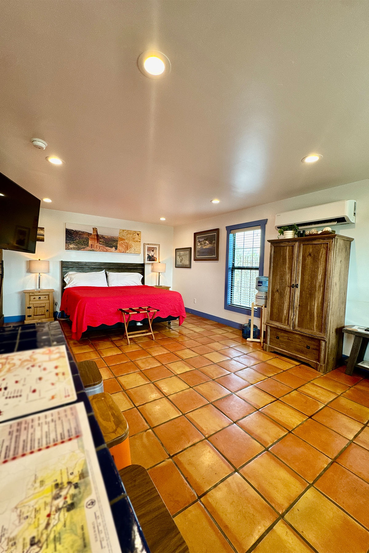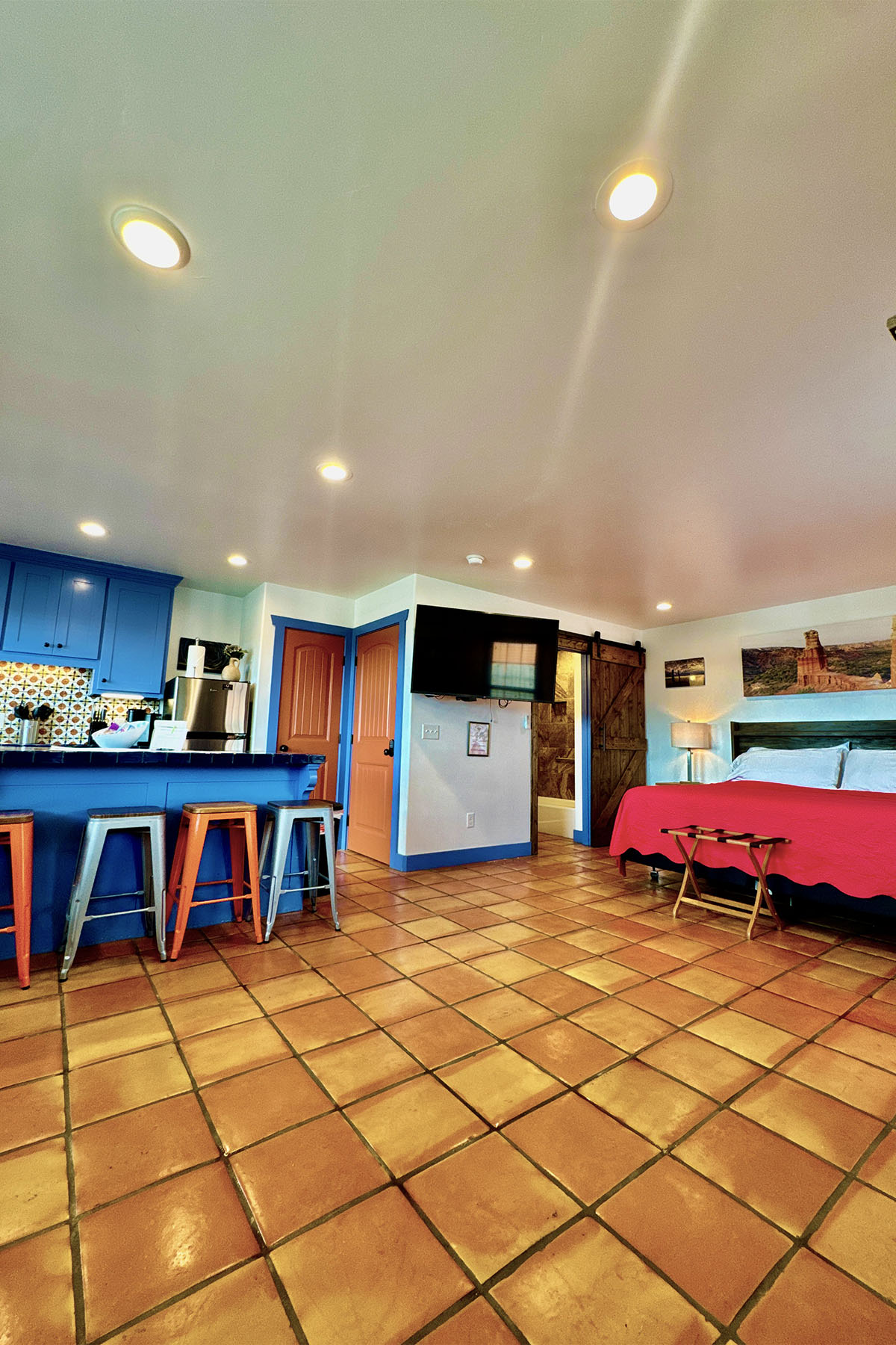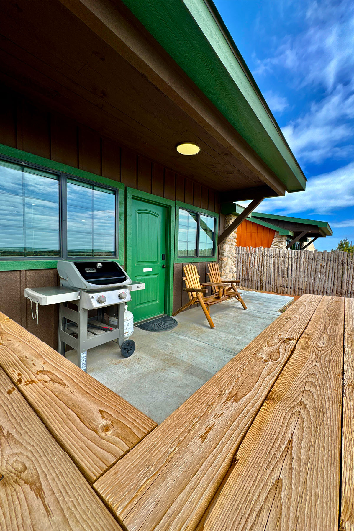 Artisan one-bedroom cabin that can accommodate 4 people. Built of native wood & native stone to fit in with the natural beauty and solitude of the Palo Duro Canyon setting. Studio feel with full bathroom, kitchenette & flatscreen TV, propane grill and Wi-Fi. Private patio with expansive views for wildlife viewing.