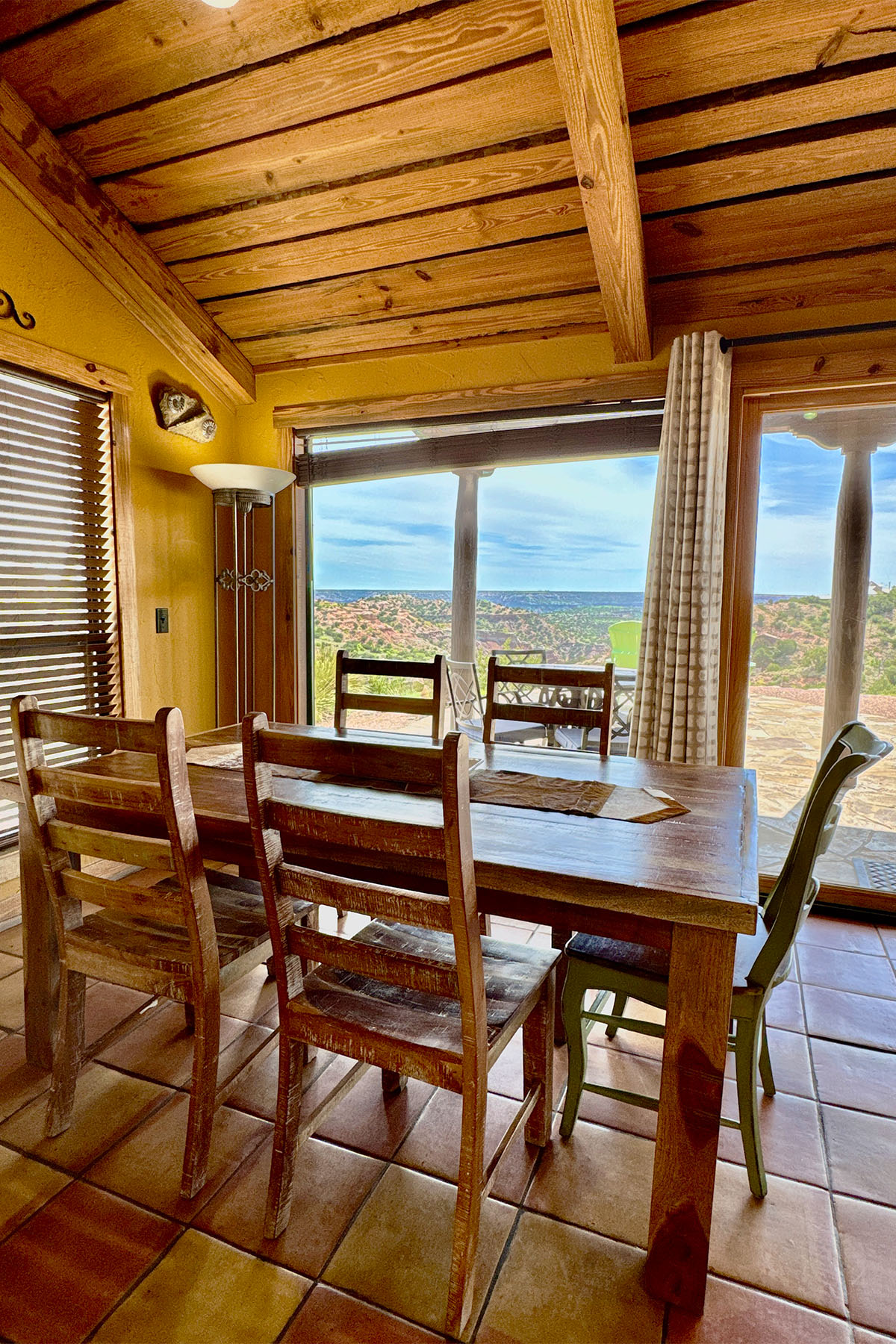 The stronghold of Fortress Cabin takes its name for the centerpiece of its view gazing at the Fortress Cliffs along the east rim of Palo Duro Canyon State Park, a protected six miles of cliffs overlooking the Grand Canyon of Texas. The bluff’s look the same way the first Texans saw it — unspoiled. The steep margins of the Fortress Cliffs consist of bright, banded layers of orange, red, brown, yellow, and white rocks that represent four geologic periods. Adding to the cliffs scenic grandeur are numerous pinnacles, buttes, and mesas. Doves Rest Fortress is a place of exceptional security, privacy and refuge.