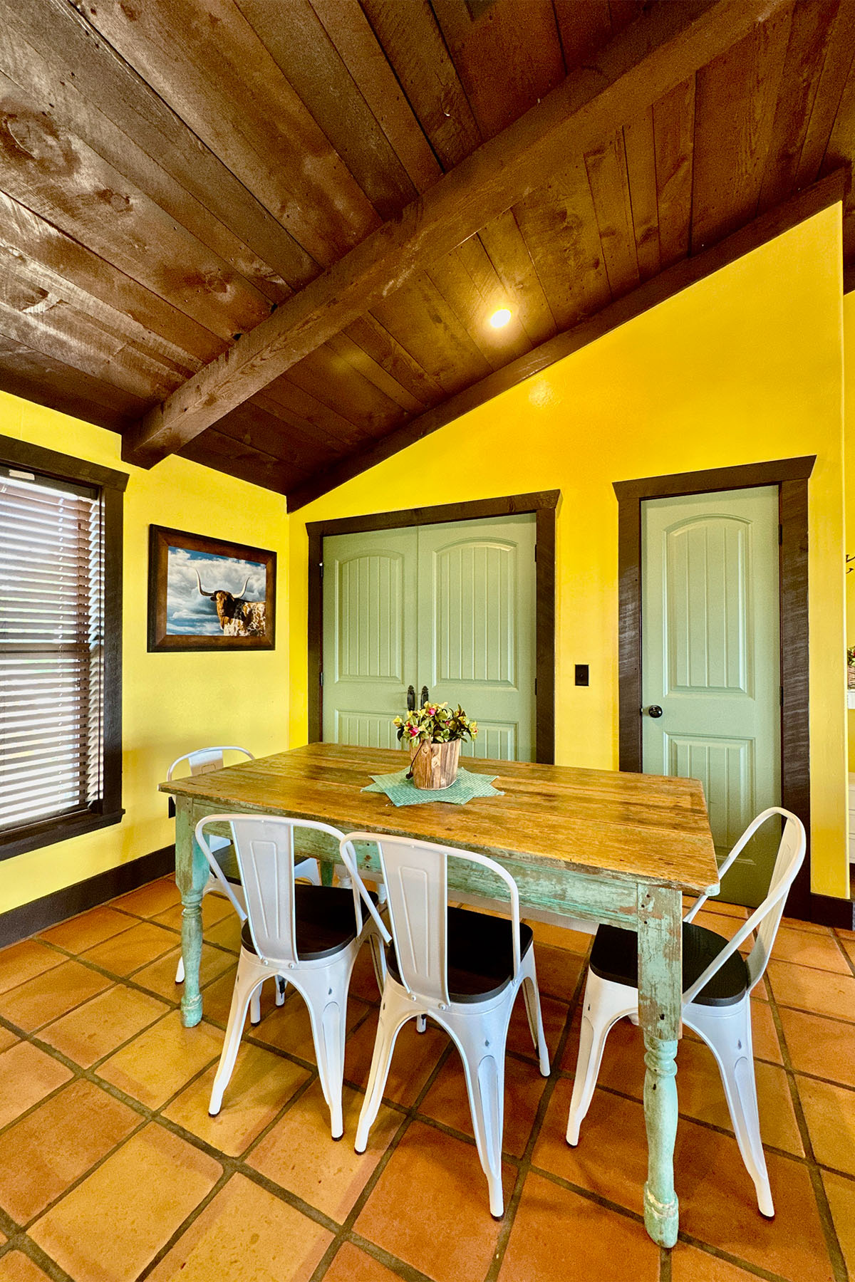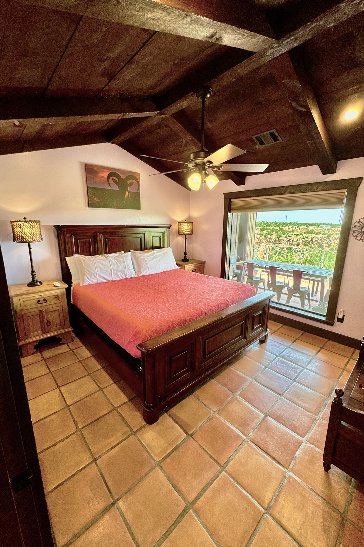 Situated on the storied and historic Marshall Ranch, moments from the entrance to America’s most beloved State Park – Palo Duro Canyon, Maverick Cabin is a destination on most traveler’s bucket list. One of the best features of the lovely view from this cabin is the proximity to the sheer edge of the canyon wall. Flint scrapers and arrowheads can still be found on this grouping of North Rim Cabins. The site where these cabins were constructed was used by Comanche’s as a “butchery,” and nearby Buffalo Draw was where the Indians drove buffalo over the cliff as a hunting technique.