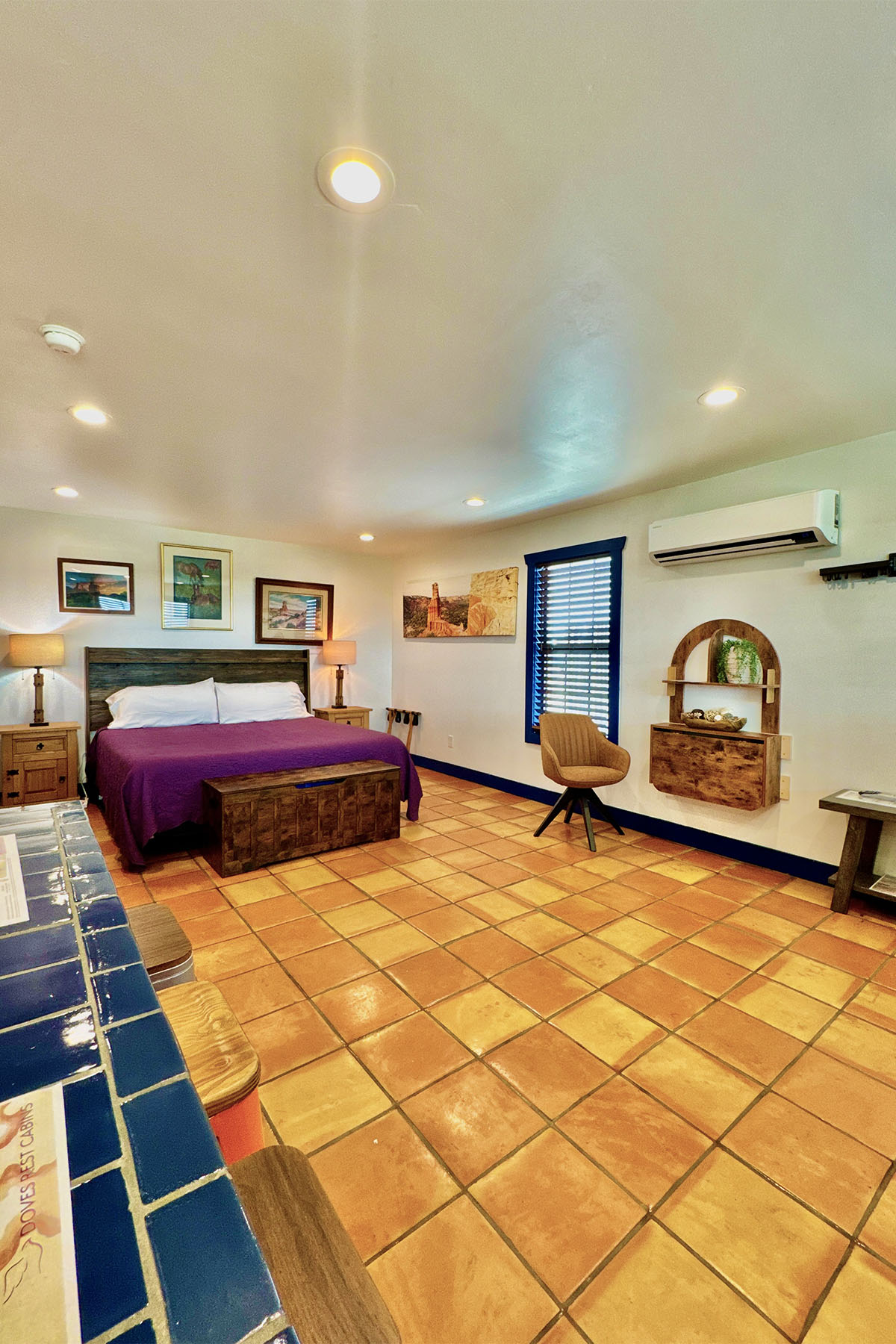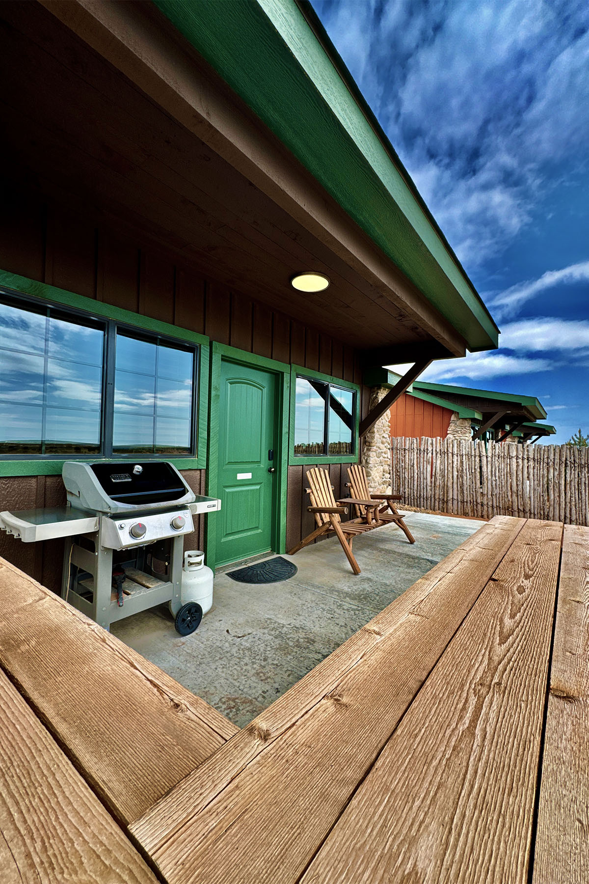 Artisan one-bedroom cabin that can accommodate 4 people. Built of native wood & native stone to fit in with the natural beauty and solitude of the Palo Duro Canyon setting. Studio feel with full bathroom, kitchenette & flatscreen TV, propane grill and Wi-Fi. Private patio with expansive views for wildlife viewing.